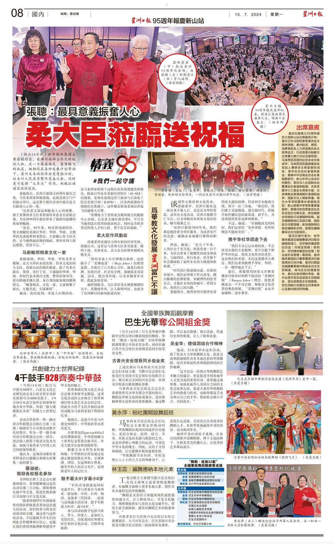 摘 自:《星洲日报》报道:共创健力士世界纪录 4千鼓手928齐奏中华鼓 2024年7月14日